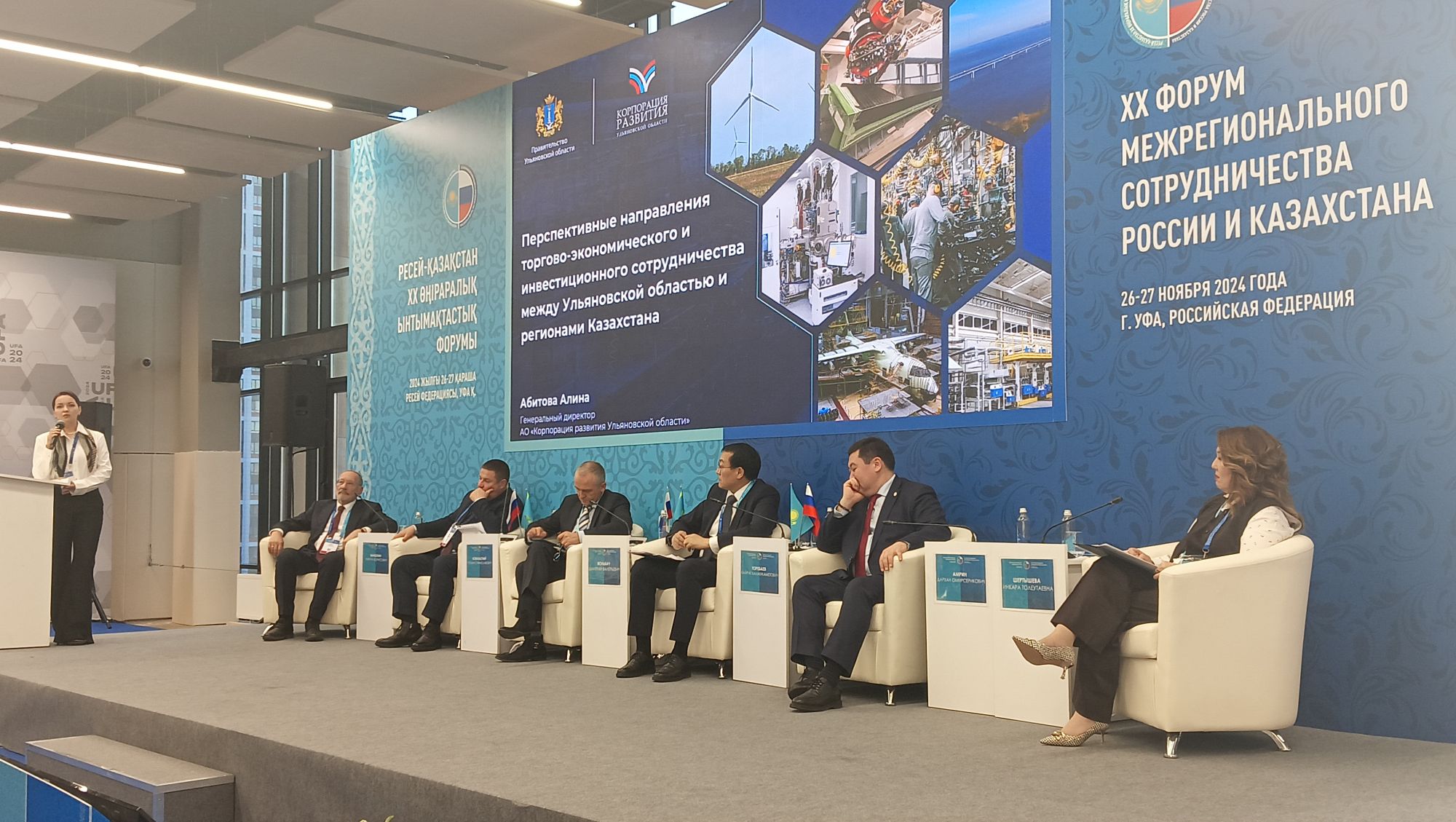 Генеральный директор Корпорации развития Ульяновской области Алина Абитова представила на форуме перспективные направления торгово-экономического и инвестиционного сотрудничества между Ульяновской областью и регионами Казахстана.