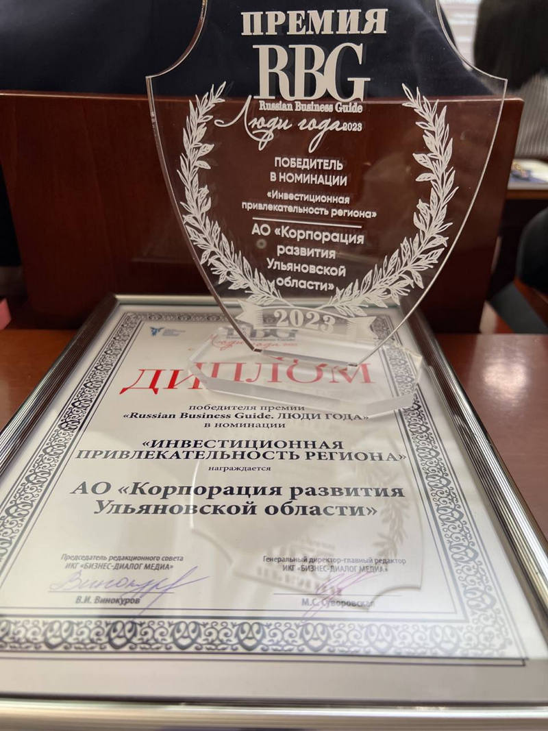 Ведущий институт развития Ульяновской области отмечен дипломом международного издания Russian Business Guide в номинации «Инвестиционная привлекательность регионов» за активную, успешную деятельность по привлечению инвесторов и открытость для СМИ.