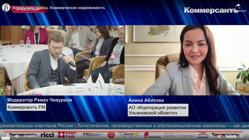 13 апреля состоялась конференция ИД «Коммерсантъ» «Апрельские тезисы. Коммерческая недвижимость». Заместитель генерального директора Корпорации развития Алина Абитова поделилась опытом Ульяновской области по созданию и адаптации объектов коммерческой недвижимости для размещения новых инвестиционных проектов.