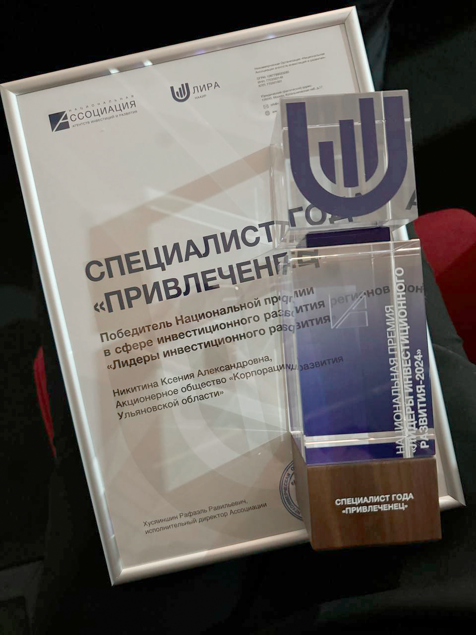 Коллектив Корпорации развития Ульяновской области поздравляет Ксению с заслуженной наградой и желает новых профессиональных достижений!