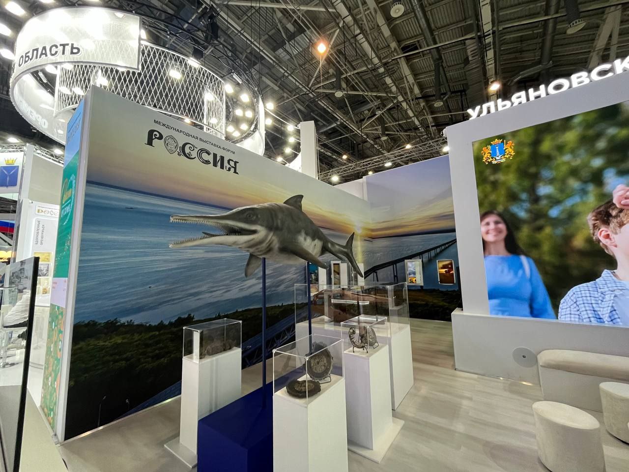 «На протяжении долгих лет Ульяновская область привлекает тысячи профессионалов и любителей палеонтологии. Крупнейшего представителя вида обнаружили здесь в 2022 году. Наш регион обладает поистине уникальными природными ландшафтами и заповедными территориями. Здесь на поверхность Волга вымывает пласты, образованные Древнерусским морем. И здесь обитали не динозавры – сухопутные ящеры, а огромные морские рептилии – ихтиозавры, плезиозавры, плиозавры. На стенде региона представлен макет ихтиозавтра — это вымерший отряд морских рептилий, населявших все моря планеты в течение мезозойской эры — 250-90 млн лет назад. Большинство ихтиозавров формой тела напоминали рыб, за что и получили своё название — «рыбоящеры». Первые находки ихтиозавров в России были обнаружены именно в Симбирской губернии», — рассказал директор Ундоровского палеонтологического музея Илья Стеньшин.