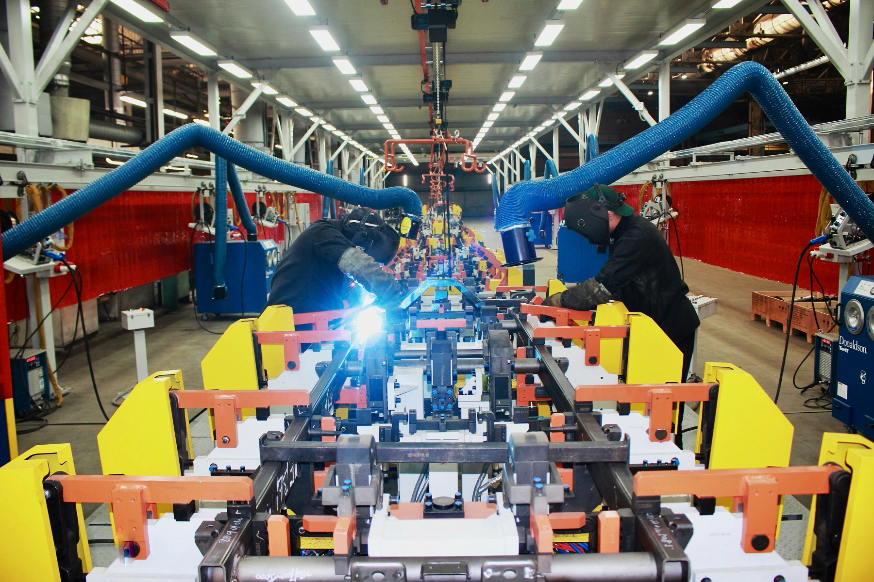 Планируемая мощность производства составляет до 11,5 тысячи рам в год. В состав линии входят шесть кондукторов – четыре сварочных, рихтовочный и контрольный. Сварка элементов рамы производится в полуавтоматическом режиме, а электронные датчики на контрольном кондукторе проверяют геометрию и позволяют выявить отклонения.