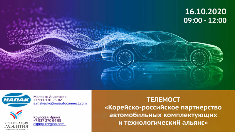 16 октября в 09.00 (ульяновское время) состоится Телемост «Корейско-российское партнерство автомобильных комплектующих и технологический альянс».