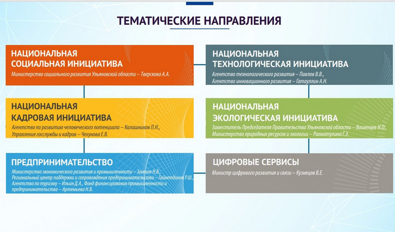В настоящий момент сбор проходит по шести направлениям: национальная социальная инициатива, национальная технологическая инициатива, национальная кадровая инициатива, национальная экологическая инициатива, предпринимательство, цифровые сервисы.